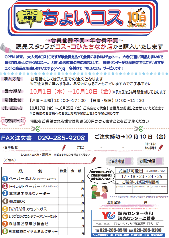 お知らせ(ちょいコス)